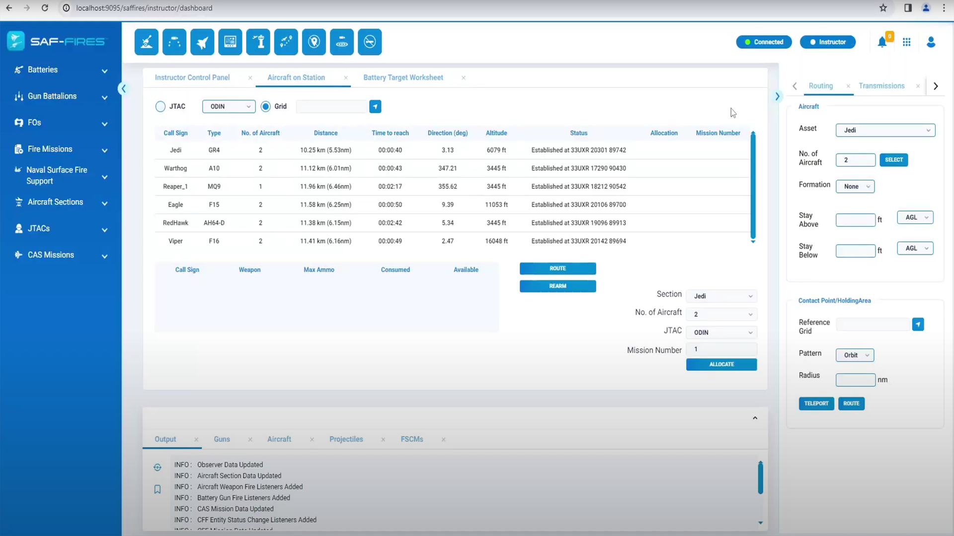 SAF-FIRES FST includes structured workflows developed with SMEs to ensure that there is a smooth and natural progression through the phases of allocating aircraft on station, check in procedures, game plans, nine line/ five line briefs, talk-on, instructions during an attack, and bomb hit assessments.