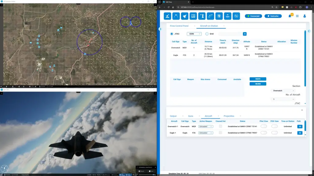 Facilitating Aircraft/JTAC Talk-on Inc. Aircraft POD View. Which Can Be Controlled by the Instructor, and Simulated Video Downlink for the JTAC.